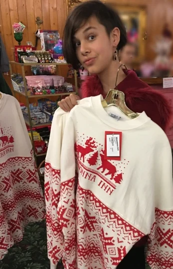 Feeling fabulous in a red cape at the Inn (photo by Heidi)