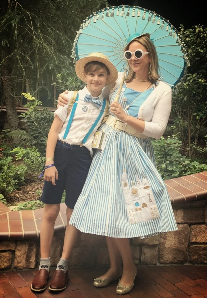The final touch was what has become a Dapper Day essential for us… the parasols. This was an opportunity to incorporate the umbrellas that the Cast Members rest under as they welcome guests on their journeys around the world. Ella never got to use her parasol which was pink and adorned with gold tassels, as she had a conflicting event and was unable to participate in Sunday’s Park stroll. Thankfully, Milo was willing to keep on being Dapper.